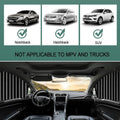- Retractable & Foldable for Daily Use: The pleated accordion-style curtain design allows for smooth opening and closing as needed. Whether you want full coverage while parked or partial shade while driving, you can adjust the curtain’s width effortlessly. When not in use, it folds neatly to the side without creating bulk. It's perfect for daily drivers who need flexibility and function without removing accessories each time.