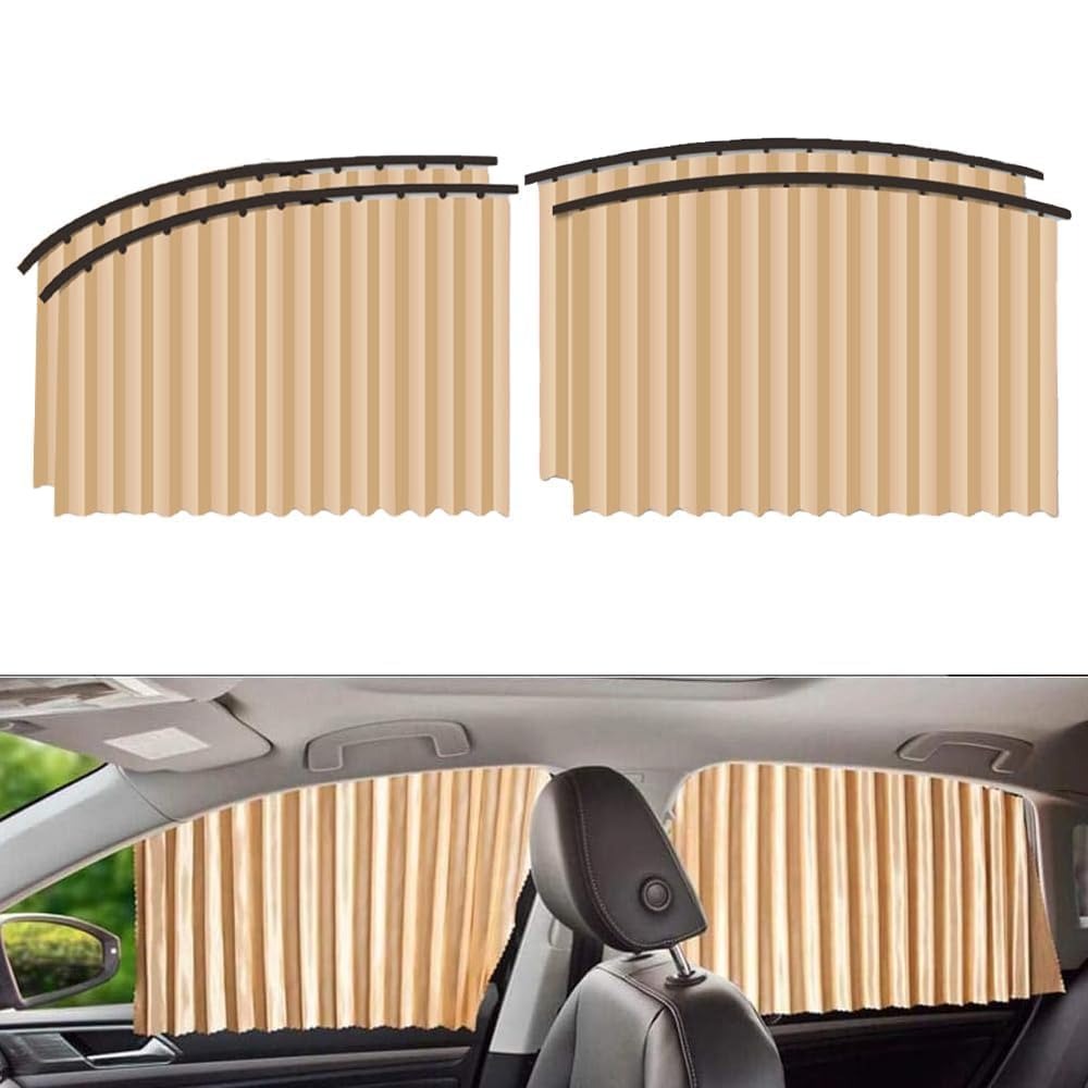 - Universal Fit for Most Car Models: Designed to fit almost all sedans, hatchbacks, SUVs, vans, and MPVs, the curtain set includes four pieces for full side window coverage. The flexible track and curtain body adapt to curved or straight window frames. No drilling or complex fitting is required, making it easy to remove or reposition. It works seamlessly on both manual and power window frames without hindering window operations.