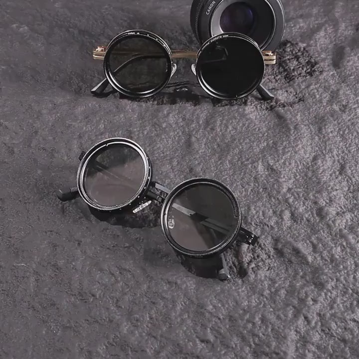 Men'S Retro Steampunk Rotating Fashion Glasses - Adjustable Brightness with Alloy Frame & BlackGray Gradient Lenses