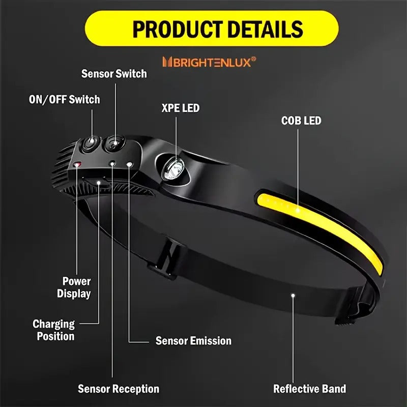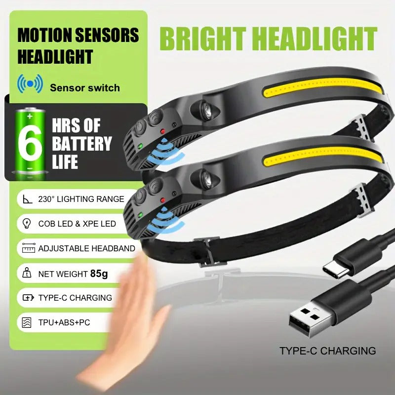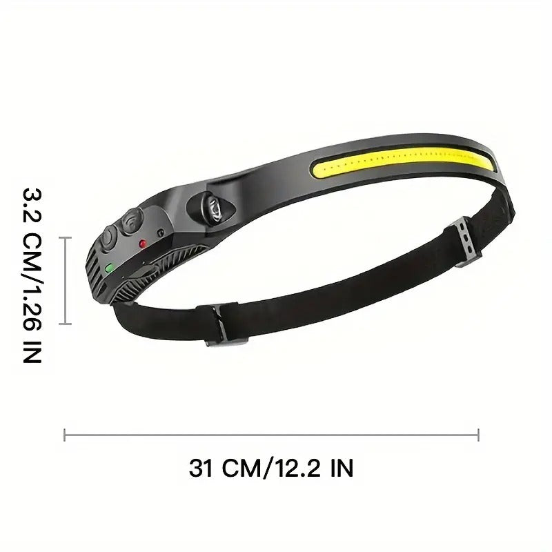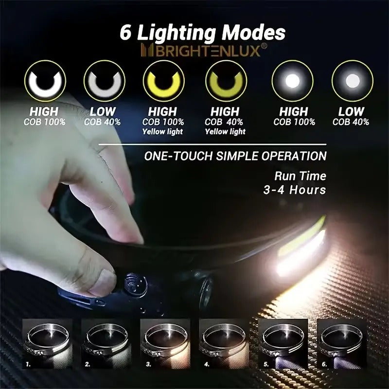 - VERSATILE 5 MODE OPERATION & WAVE INDUCTION: The head lamp features an easy-to-use 5 mode switch; COB 100% / COB 40% / XPE 100% / XPE 40% / Flash. Powered by COB that deliver 350 Lumens in the high setting for maximum illumination.The head lamp with a side wave induction sensor and one touch buckle,easy to work outdoor when wearing this headlamp